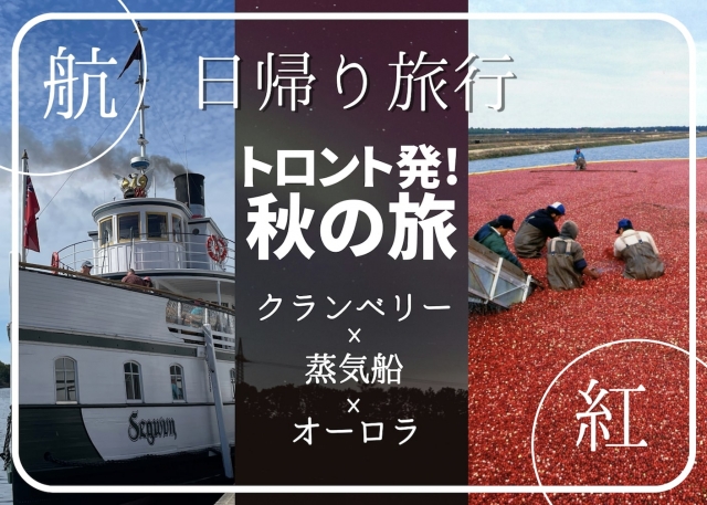 トロント発着で、カナダ最古級の蒸気船「RMS Segwun」によるムスコカ湖の紅葉クルーズ、クランベリー収穫体験、そして星空観察(Torrance Barrens 予定)まで楽しむ秋限定・長時間日帰りツアーです。 蒸気船クルーズや収穫体験は混雑のため事前予約が必要です。飲食・有料アクティビティ・お土産は各自ご負担となります。