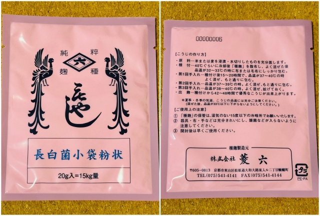 種麹20gで15kg分のお米(給水前の原料としてのお米15kg)を麹に仕上げられます。