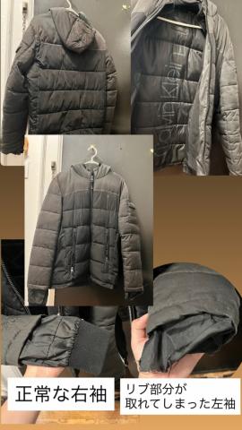 袖口にはリブが付いていますが、片方がほつれて欠けています。(写真あり)