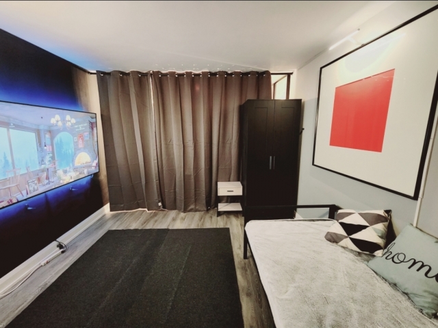 お部屋は**リビングスペース(ドアなし)**ですが、厚手のカーテンでプライバシー