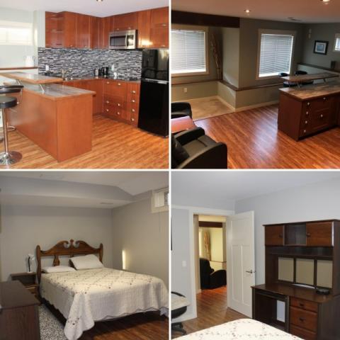 ・ウォークアウトベースメントで、リビングやキッチンは明るく、専用玄関があります。