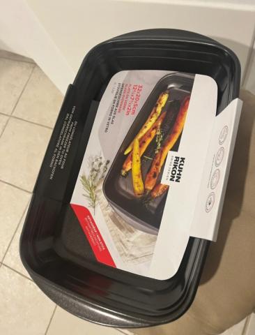 Kuhn Rikon baking pan, perfect for all your baking needs! It's a Swiss design and measures 32x20x5cm. The pan is made of glass ovenware and features an anti-adhesive nonstick coating. It's in excellent condition and ready for a new homeDetails: