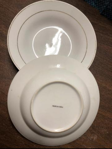 Selling two of white soup bowls with a gold rim! They're in great shape and ready for a new home. Perfect for serving up your favourite soups or stew