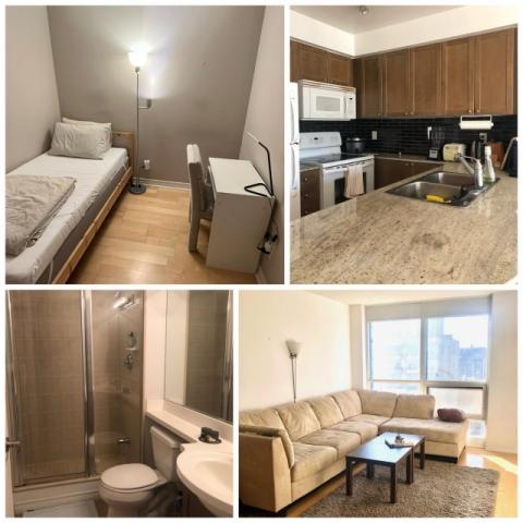 1-minute walk to College Subway Station, a spacious den converted to bedroom.- Rent: $950/month, including everything (hydro, utilities, Wi-fi, laundry, etc.).