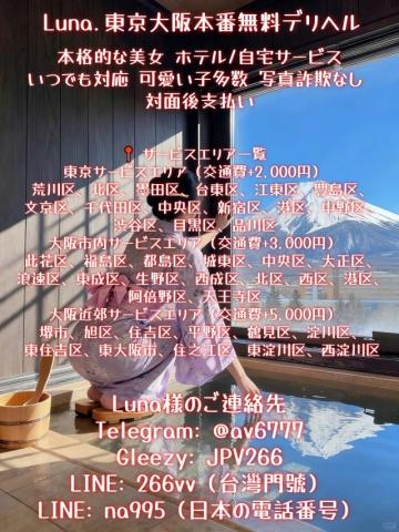 東京大阪NO.1高級デリヘル・Lunaの夜桜會費用をお支払いいただける、安心・安全・プライバシー重視のサービスをご希望の男性の方、ぜひご連絡ください。