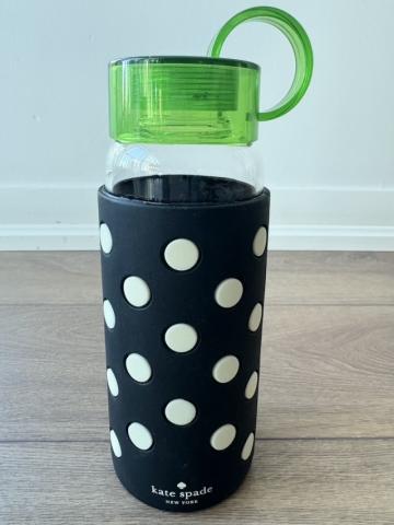 BPAフリーのガラス製水筒です。熱湯による消毒済みで、衛生面にも配慮しております。注ぎ口付近に黒ずみがございますが、使用には問題ありません(詳細は写真をご参照ください)。 • サイズ: 22.86 x 8.89 x 8.13 cm