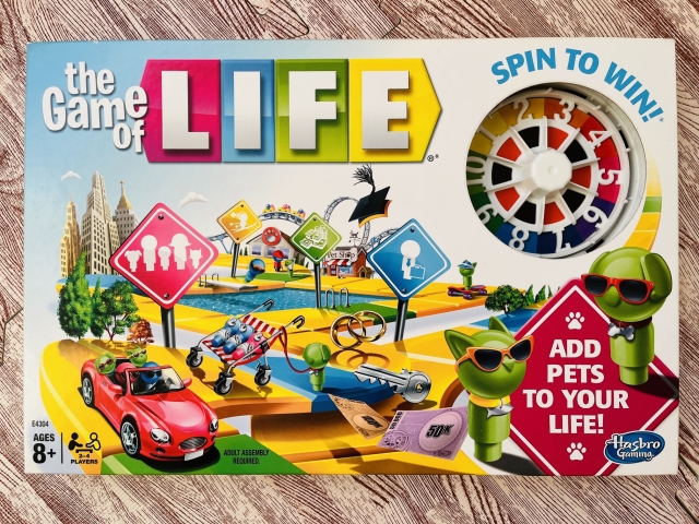 The Game of LIFE(人生ゲーム)を10ドルでお譲りします。1回遊んだのみなのでまだとてもキレイです。カードやコマなどの細かい付属品も全て揃っています。
