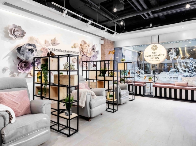 N15 アイラッシュ&ビューティーサロンは、アットホームで少人数制のサロンです。パステルカラーを基調とした店内でリラックスしながら施術をすることができます。
