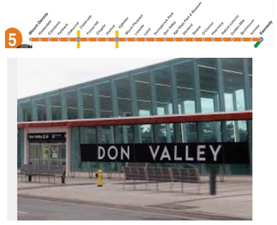 • 12 minutes or so to Eglinton subway station, 12 minutes or so by bus to Don Mills station & 20 minutes by bus to Pape & Broadview subway station