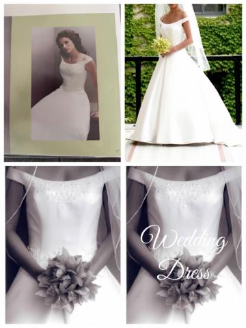 写真左上はパンフレットにのっていたドレスの写真です。