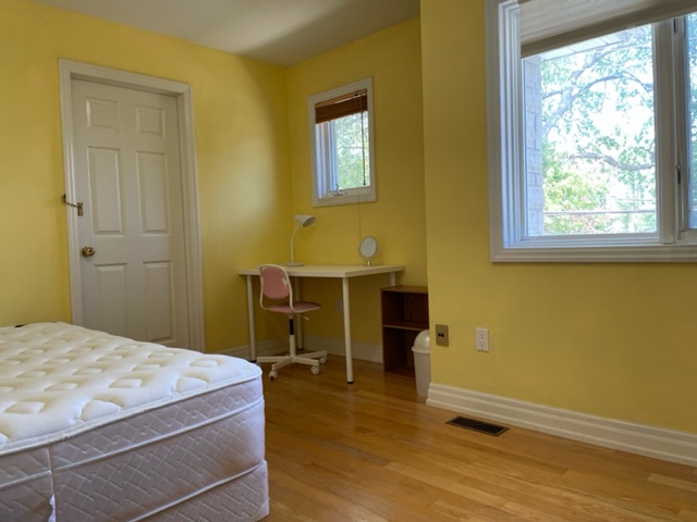 明るくキレイな部屋は鍵付ドアでベッド、クローゼット、机、椅子、スタンドが設置されています。トイレ&シャワールーム付き。