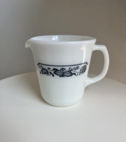 ヴィンテージパイレックスミルクグラス、オールドタウンブルーのクリーマーを15ドルでお譲りします。(別で出品のバタフライゴールドのボウルと一緒の場合は10ドルでお譲りします。)摩擦キズ、欠け、シミは無く、とても良いコンディションです。