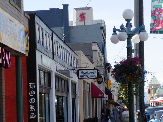 アンティーク街は、骨董品の店が軒を並べる通りで、フォート通り Fort St.沿いで、ブランシャード通り Blanshard St.からクック通り Cook St.までを指します。英国調のアクセサリーや食器などの掘り出し物も多いことでも有名です。火曜と木曜には一般の人も参加できるオークションも開かれてます。