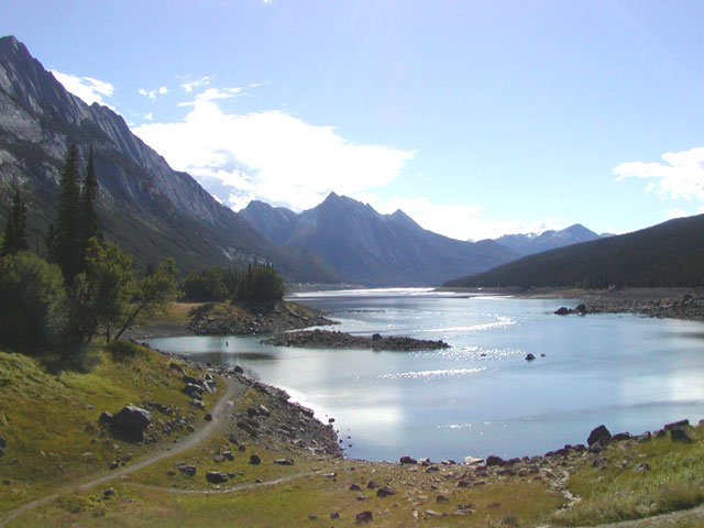 メディスン・レイクは、秋から冬にかけ水の量が減り、泥沼のようになり、ついには湖が完全に消えてしまう不思議な湖です。これは、湖底から水がしみ出し、その水が15km 離れたマリーン・キャニオンの方まで流れ出すために起きます。そして、夏になると氷河が解けて再び姿を表します。湖はダウンタウンからマリーン・レイクへ向かう途中にあり、その道路(Maligne Road)沿いにはビューポイントが点在しています。