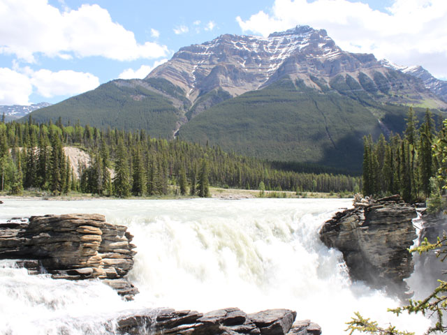 アサバスカ滝は、アサバスカ川とサンワプタ川が合流し、さらに水量を増やしたところにある滝です。川の勢いが削った岩壁の間を通る水は、激しい勢いで流れていきます。滝周辺にはトレイルがあり、様々な角度から滝を見ることができます。