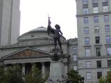 ダルム広場(プラス・ダルム)は、旧市街地の中心にある、モントリオールの祖メゾヌーヴの像が立つ広場です。ちなみにこの像は市制250周年を記念してつく荒れたものです。この地区はかつて経済や宗教の中心であったため、ノートルダム聖堂を初め重厚な建物に囲まれています。